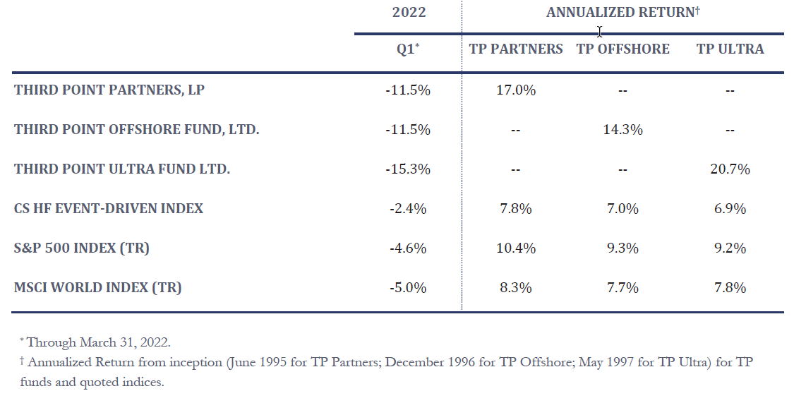 During the First Quarter, Third Point returned -11.5% in the flagship Offshore Fund and