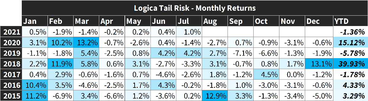 Logica Tail Risk (LTR) - Max Downside Convexity – Strong Negative Correlation