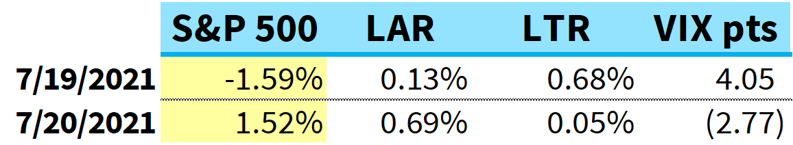 - Returns are Gross of fees. LAR Fund +1.98% (net), LTR Fund +0.87% for July 2021